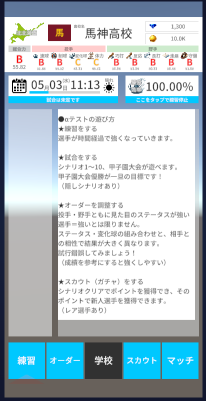 実は裏でβテスト(育成関係)用の取り組みを進めており、ストーリーや選手の入部・引退等は実装できつつあります。