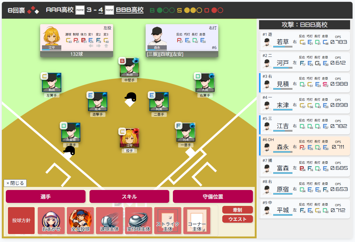 ホントはこの後に、試合結果詳細(1球速報的なもの)や成績分析(誰に強くて誰に弱いか)を見て、良い選手を見極めていくサイクルになるのですが・・・