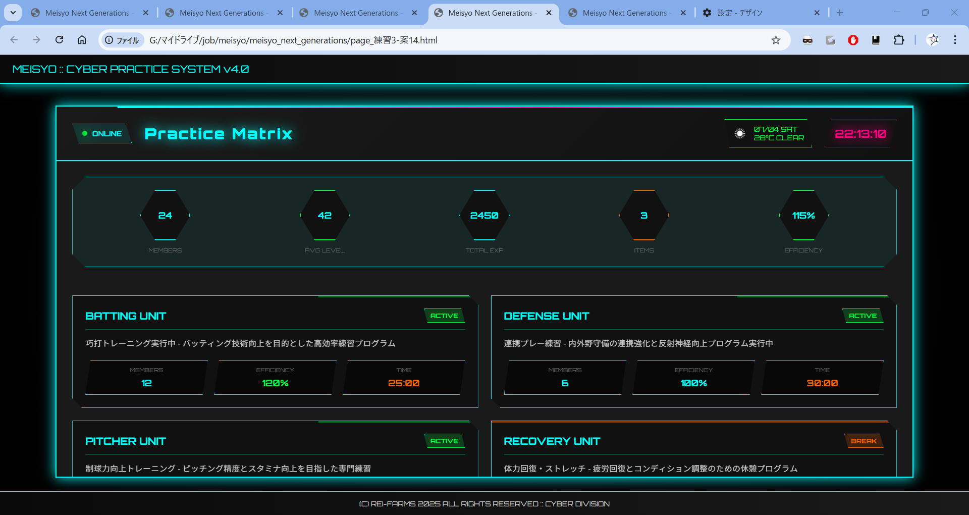 これを見ると、このゲームは練習(育成)と試合(実戦)が中心ですね!